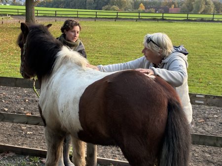 theoretisch und für sein Auge viel lernen konnte. Jeder Reitstunde schloss mit eine gemeinsame Sichtung und Beurteilung des jeweiligen Muskelzustands der zuvor gerittenen Pferde an. Auch hier konnte über das Sehnen und Fühlen viel gelernt werden.